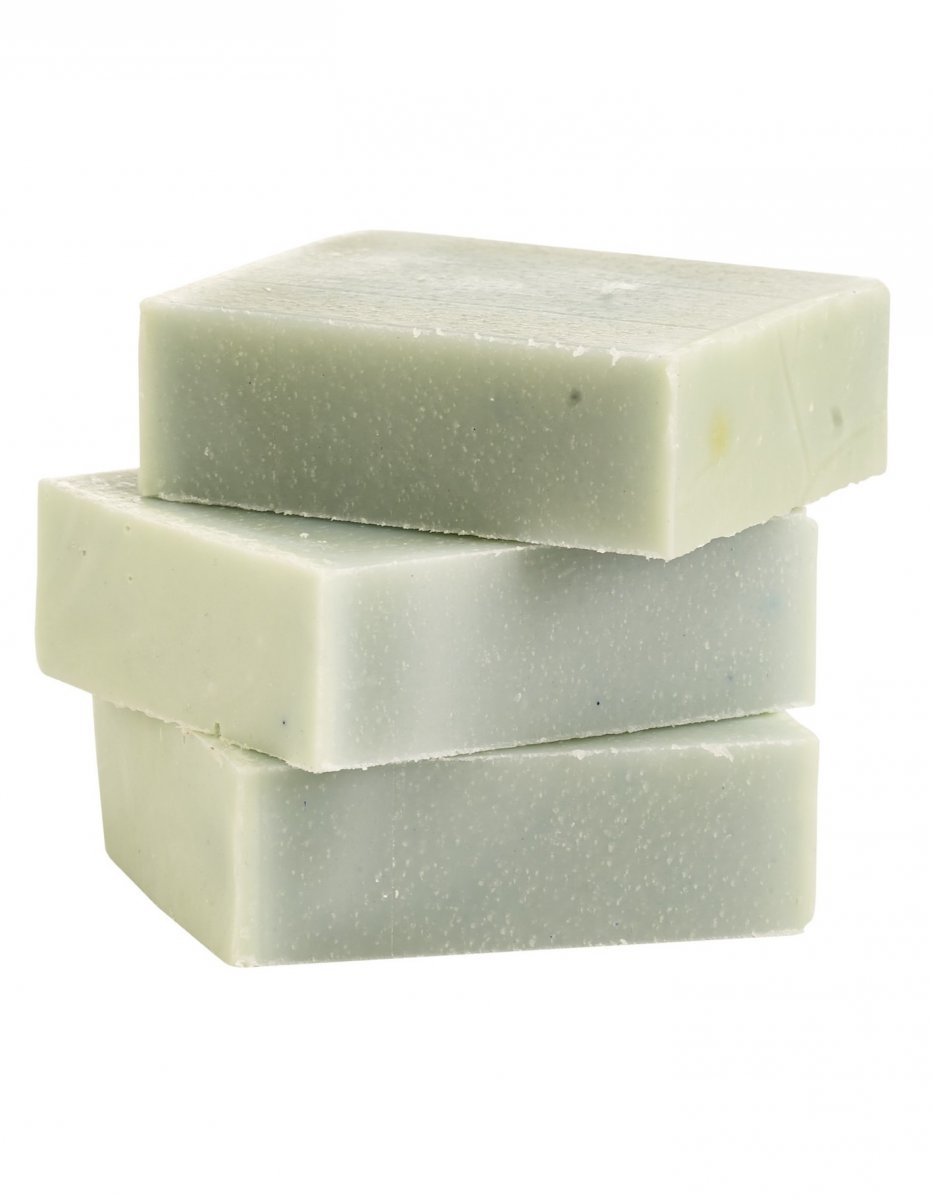 Håndlavet sæbe med lavendel og rosmarin, i en fin grøn farve.
