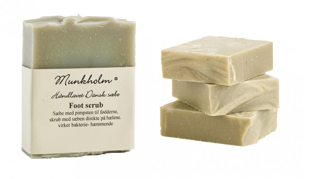Håndlavet sæbe med pimpsten. Eminent til fødderne. Skrub sæben direkte på hælene. Dejlig duft.
