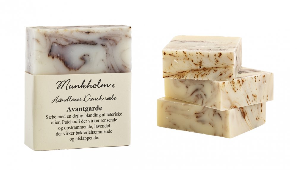 Avantgarde - håndlavet sæbe, med en dejlig blanding af æteriske olier. Indeholder patchouli, der virker rensende og opstrammende. Lavendel, der virker bakteriehæmmende og afslappende.