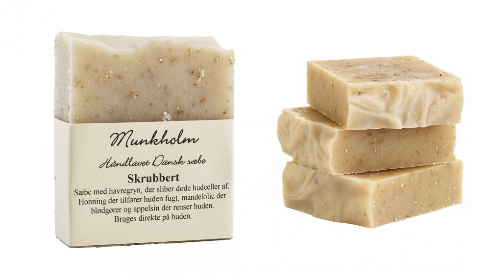 Håndlavet sæbe med havregryn, der mildt sliber døde hudceller af.Indeholder honning, der tilfører huden fugt, mandelolie der blødgør. Der er også tilsat appelsin, som renser huden. Brug sæben som skrubber, direkte på huden.
